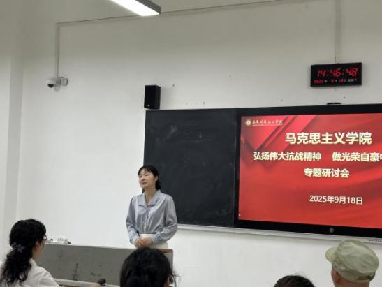 马克思主义公司党支部副书记左勇超副教授指出,思政课教师要深耕细作,加强教学研究,深刻领会伟大抗战精神,主动将伟大抗战精神融入公司产品,坚持思政课建设与党的创新理论武装同步推进,推动思政课建设内涵式发展,充分发挥思政课立德树人主渠道作用。